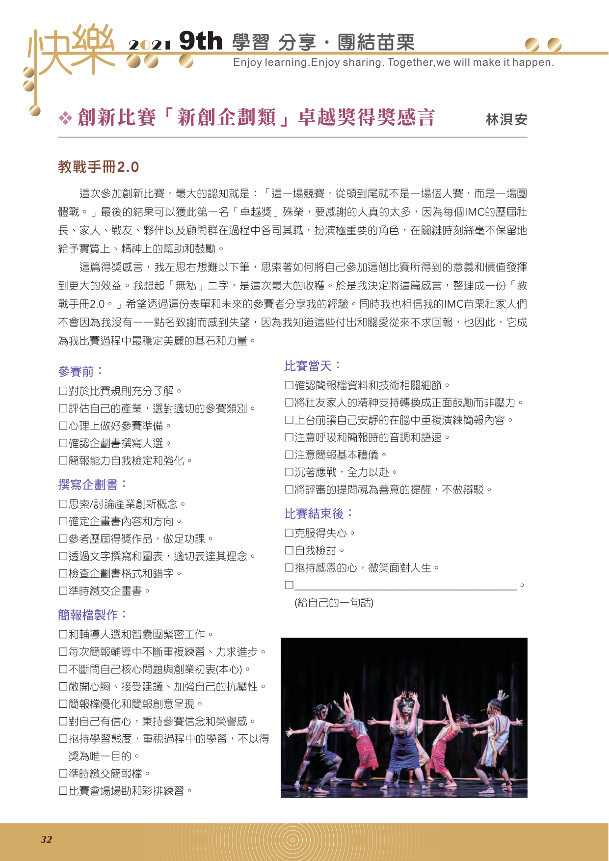 創新比賽「新創企劃類」卓越獎得獎感言 林浿安 撰稿 By ad|2021-05-03T13:18:10+08:0017 10 月, 2020|最新消息, 社友分享|在〈創新比賽「新創企劃類」卓越獎得獎感言 林浿安 撰稿〉中留言功能已關閉 請選擇您想分享文章的平台! FacebookXRedditLinkedInWhatsAppTumblrPinterestVkXingEmail: