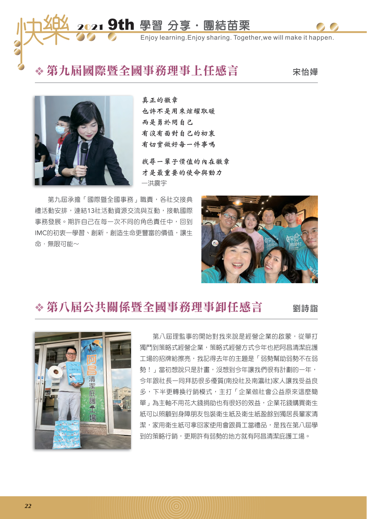 第九,八屆國際暨全國事務理事(上/卸)任感言